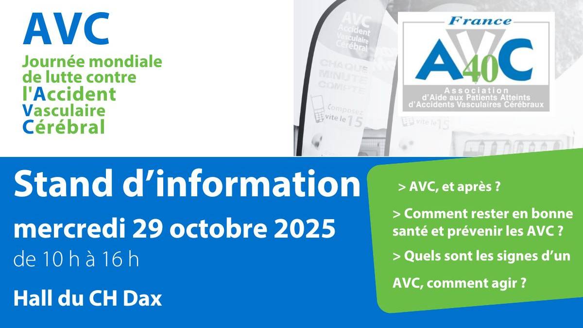 Stand d'informations le mercredi 29 octobre 2025 de 10 h à 16 h dans le hall du CH Dax