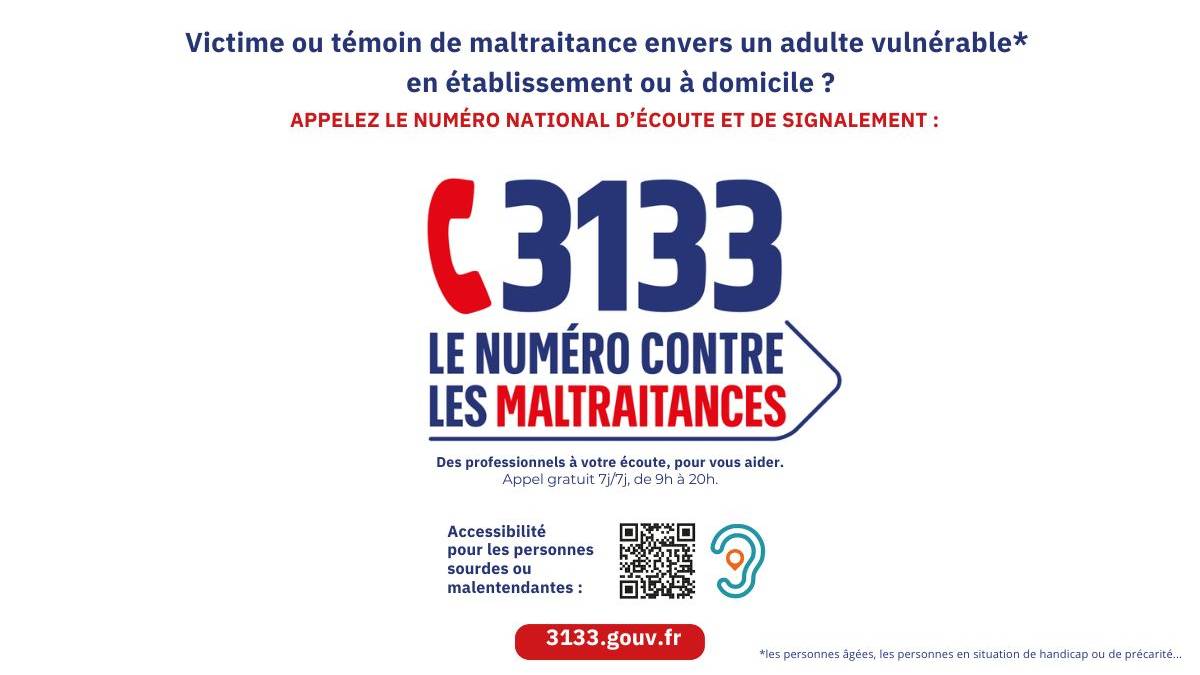 La plateforme téléphonique nationale 3133 est dédiée au recueil des signalements de maltraitance envers les adultes vulnérables.
